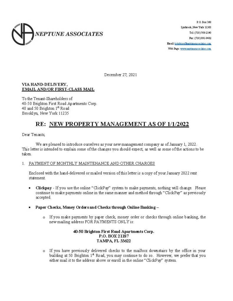 January Maintenance Checks, Billing & New Payment Instructions Posted by4050brightonDecember 24, 2021December 24, 2021Posted inGeneral Share this: Share on X (Opens in new window) X Share on Facebook (Opens in new window) Facebook Like Loading... Related